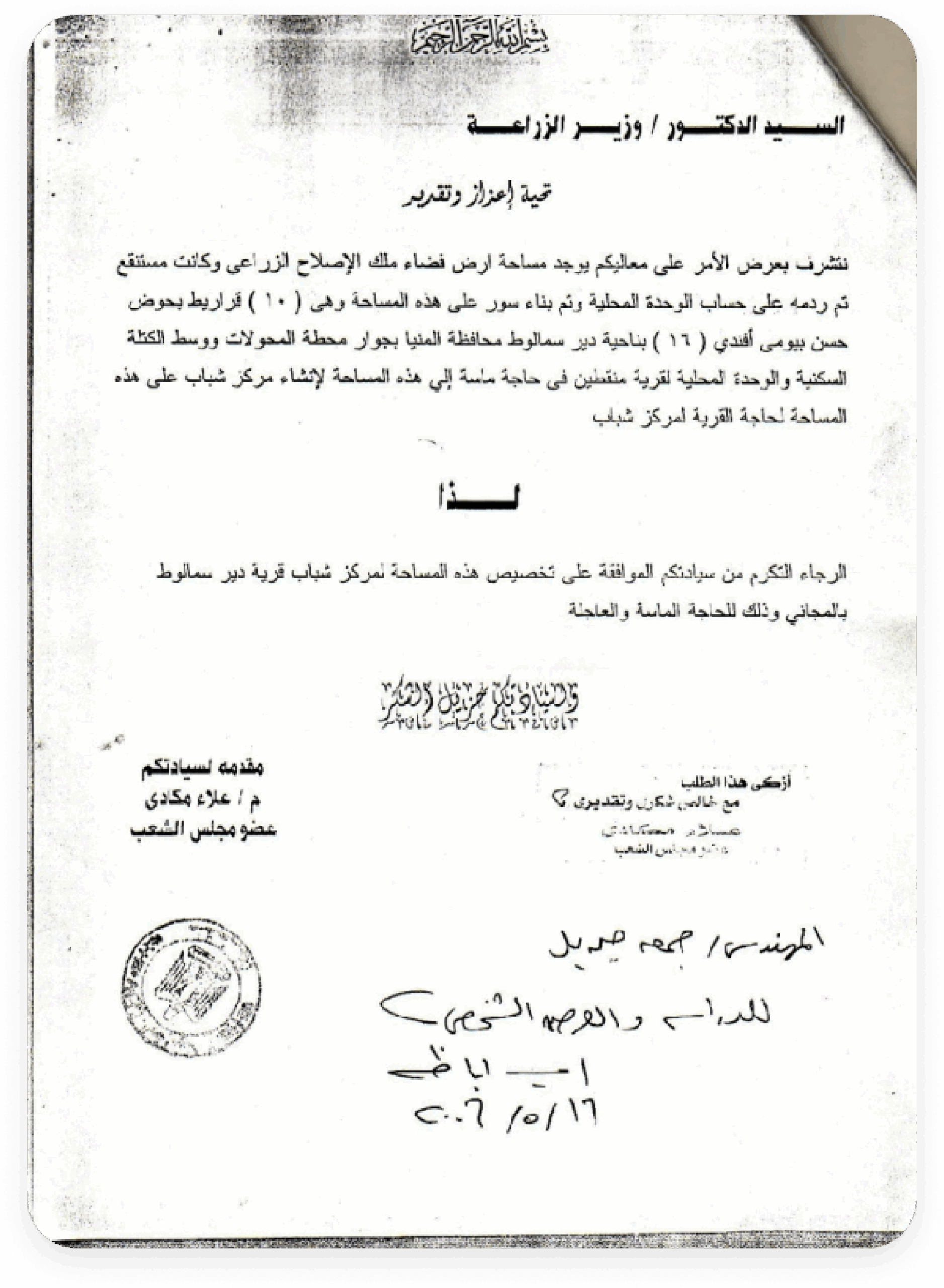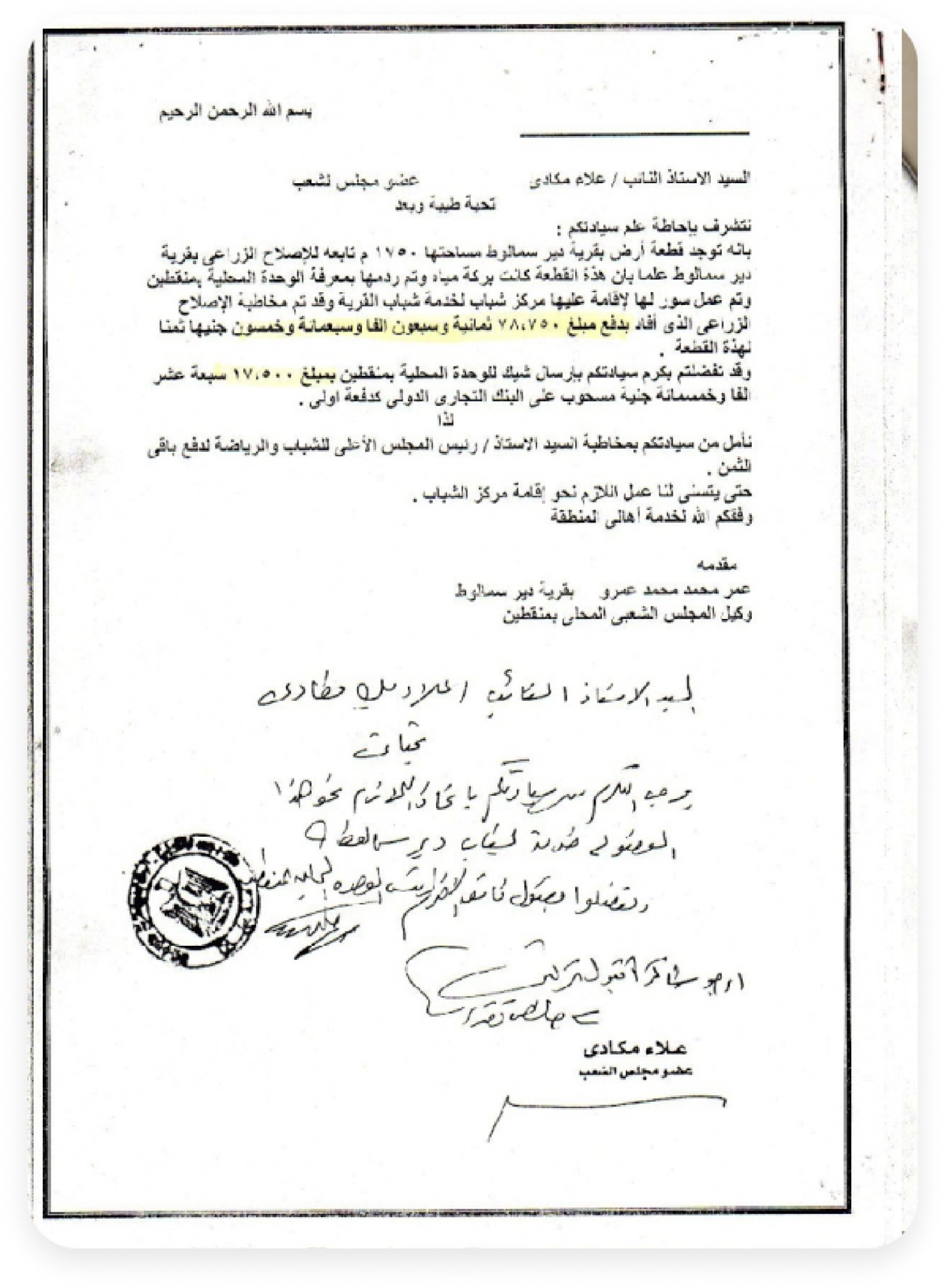 إدراج إنشاء كوبري على النيل لربط سمالوط شرقًا وغربًا بالخطة الخمسية (2012–2017) والتصعيد قضائيًا عام 2015 لسرعة تنفيذه •